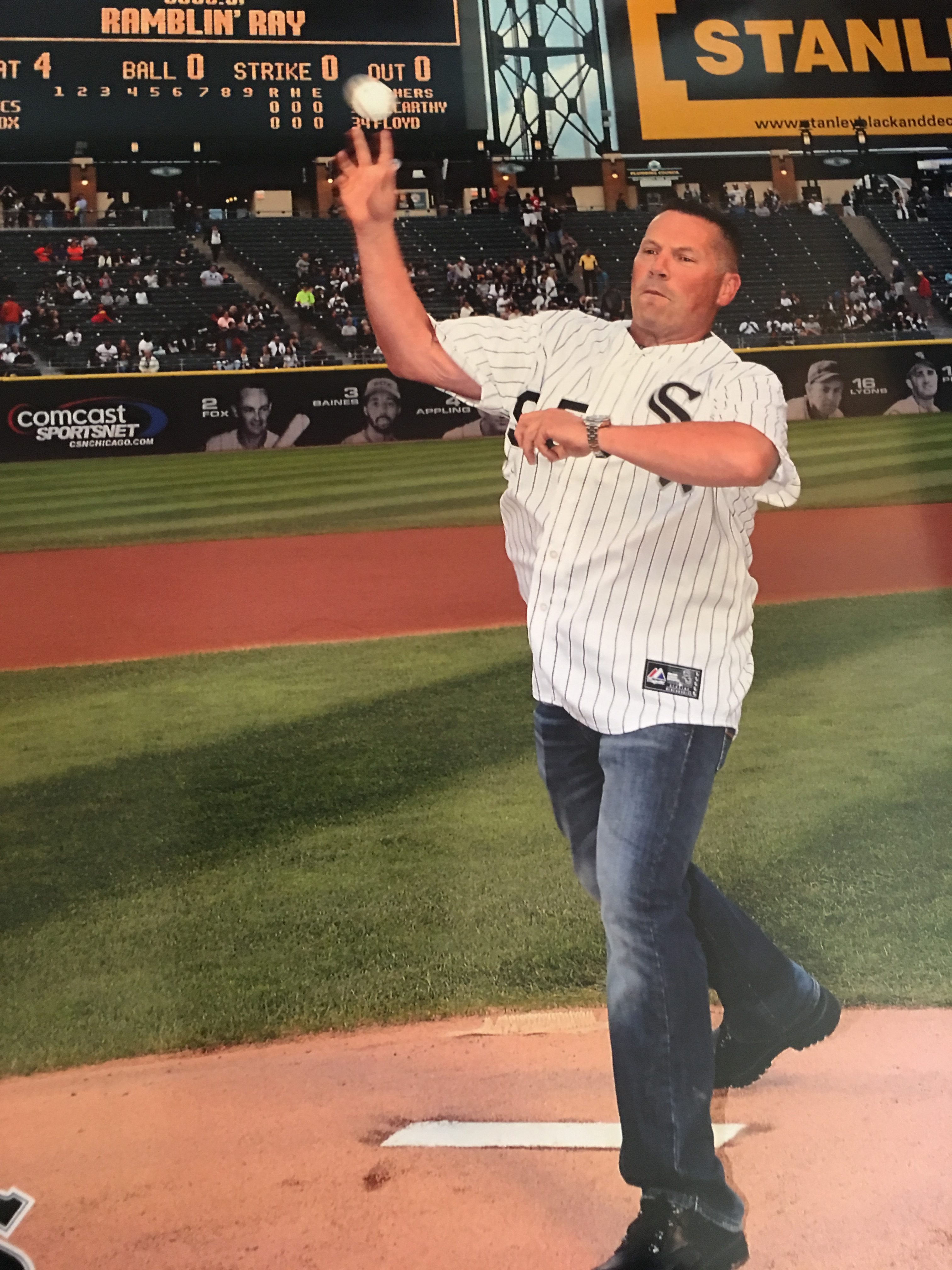 Ray tossing out the first pitch at a White Sox Game